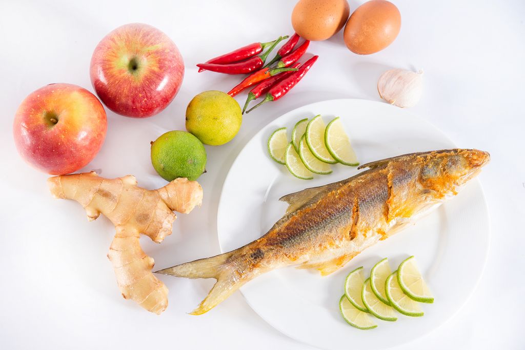 3.    先煎魚皮那一面,待魚肉面有小水泡產生時,表示肉有過半熟透